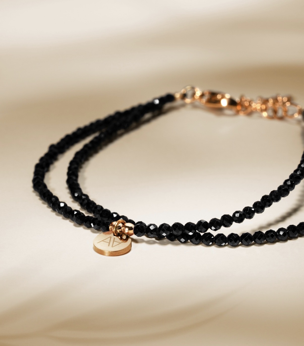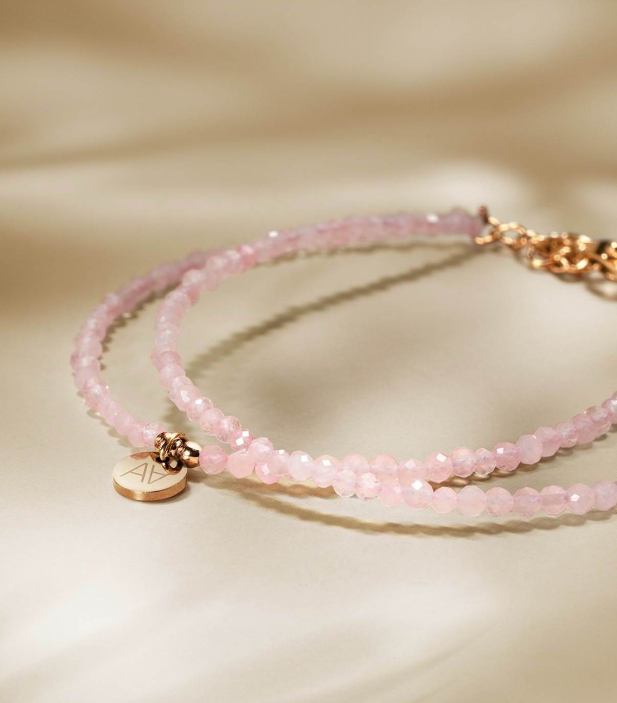 Двойна гривна с турмалин, лунен камък и розов кварц