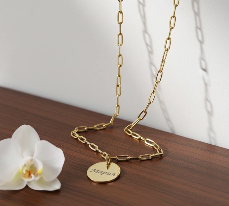 Колие с гравирана кръгла висулка с буква или име по избор