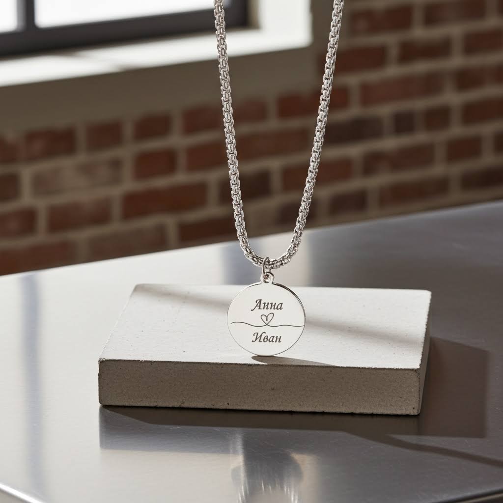 Колие с гравирани имена и безкрайност сърце по ваш избор.