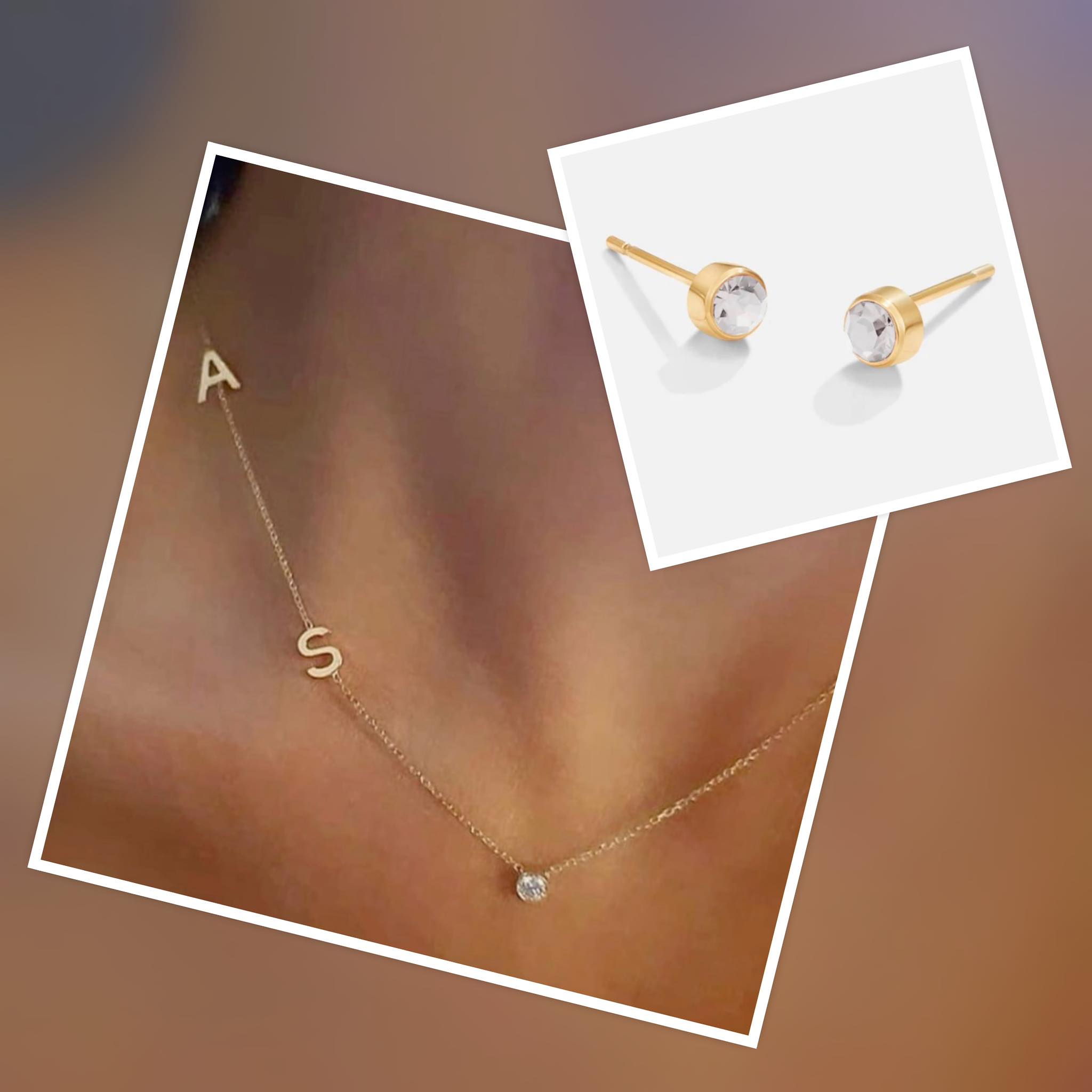 Комплект колие с две букви по избор и обеци с цирконии – без възможност за гравиране