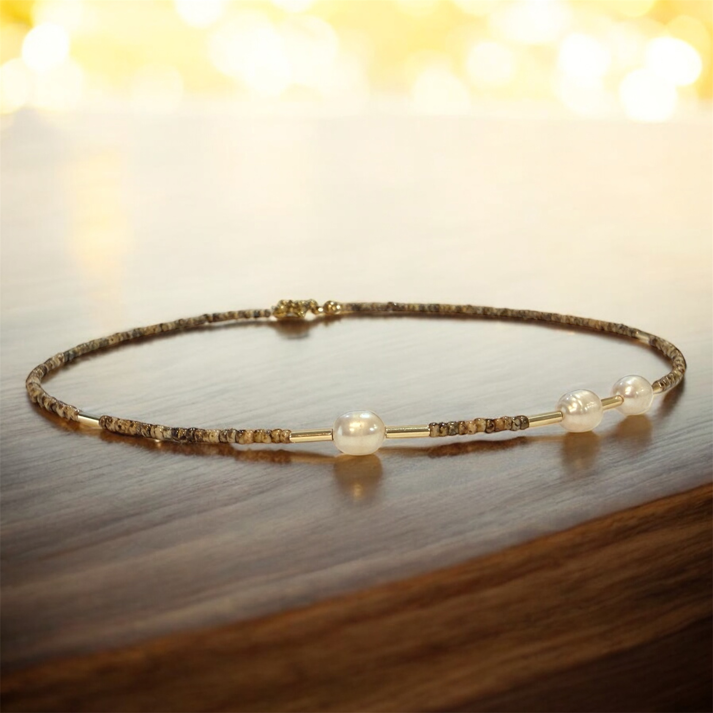 Чокър с естествени перли и кафеникави мъниста Миюки.