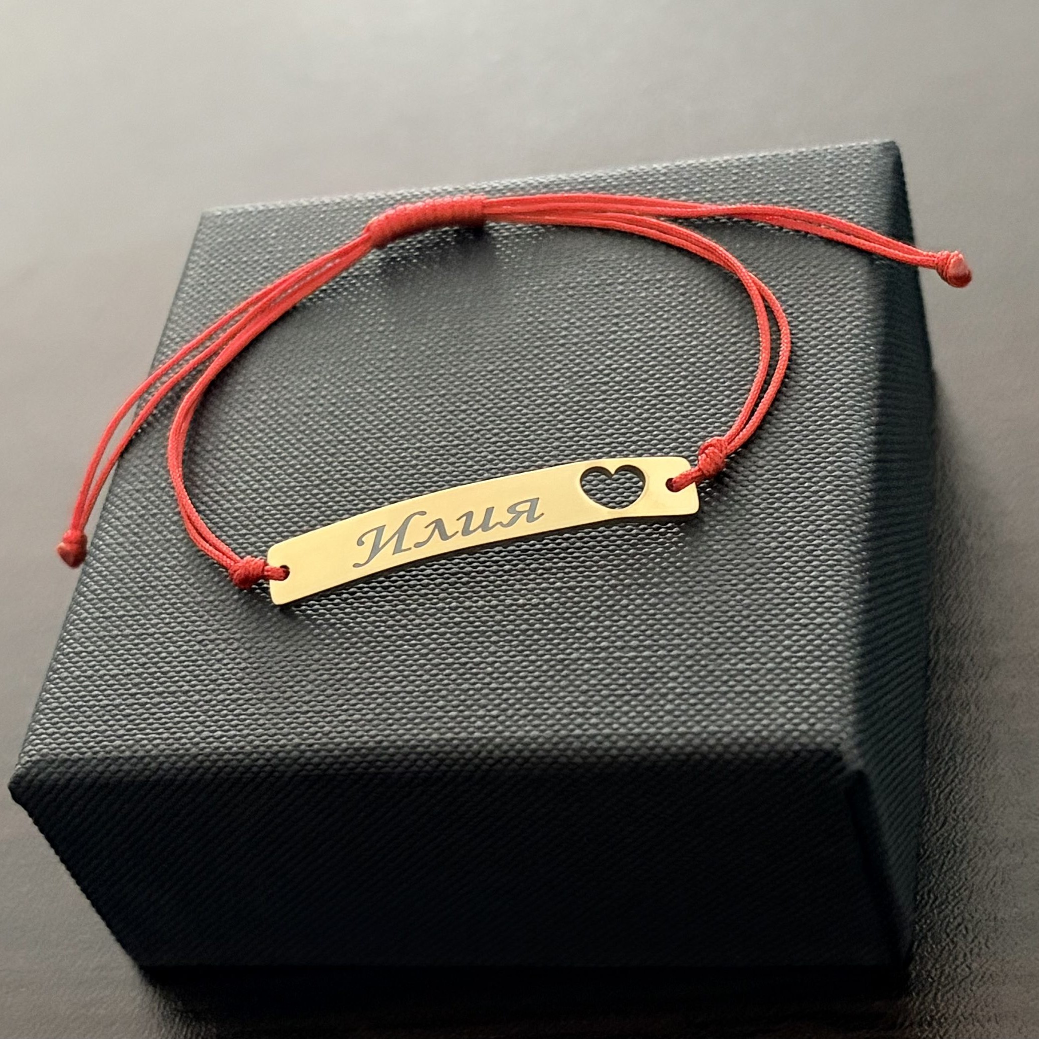 Гравирана гривна с червен шнур Токио